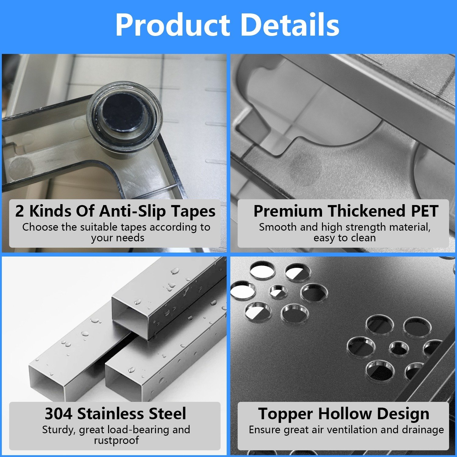- *Rustproof & Sturdy Material*: Constructed of thickened PET material and high-strength stainless steel pipes,sturdy,rustproof,renders you great loading capacity and long lasting use. Additionally,topper basket is also featured with hollow design,offers excellent drainage.