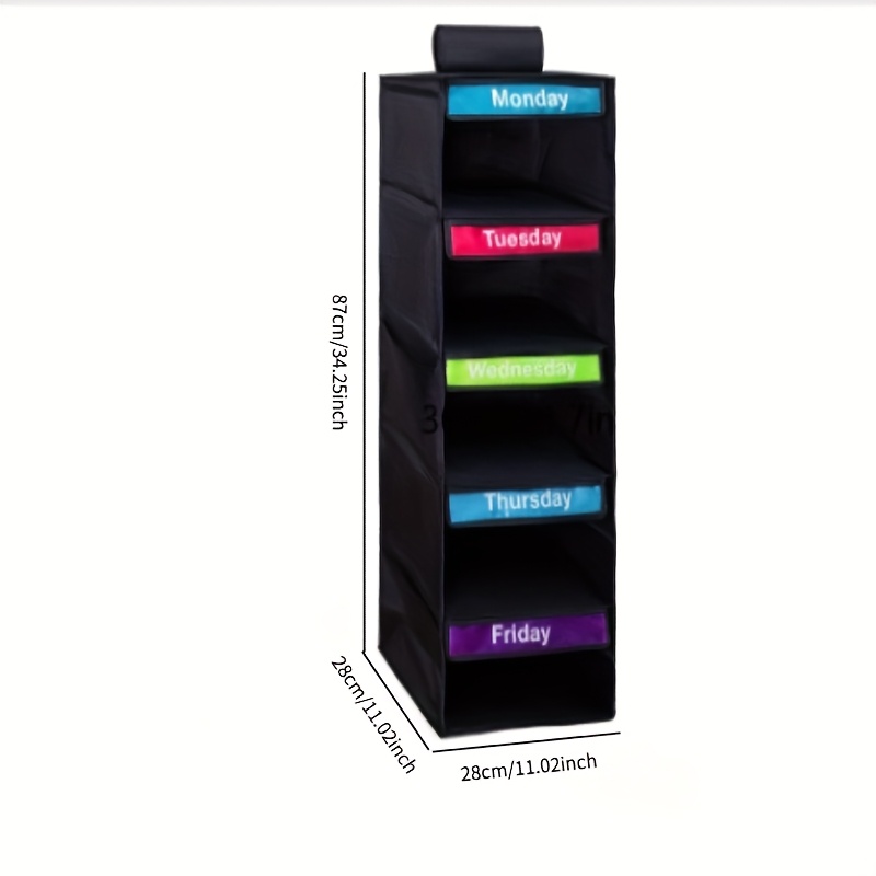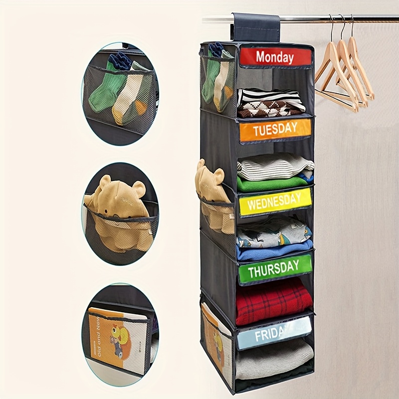 1pc 5-Tier Youngsters Clothing Organizer – Weekly Color-Coded Hanging Storage Bags With Durable Nylon Wall-Mounted Shelves For Bedroom, School Dorm, Closet – Organize Clothes, Pants, Underwear, Socks