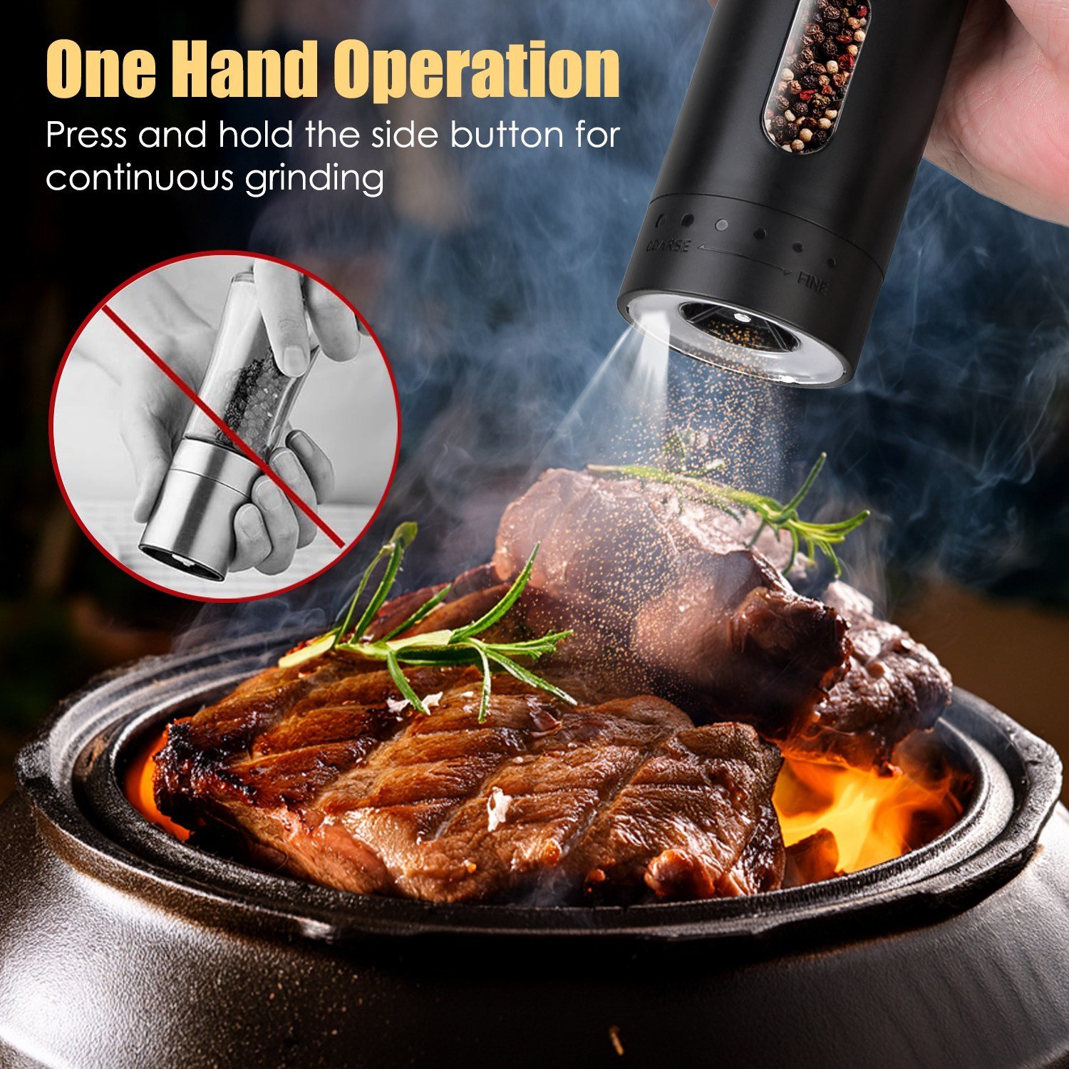 - *One-Handed Operation*: Simply press the side button to grind,release to stop – perfect for multitasking over sizzling pans. The auto-activated LED light kicks on instantly,letting you perfectly season steaks or midnight snacks without flipping switches.