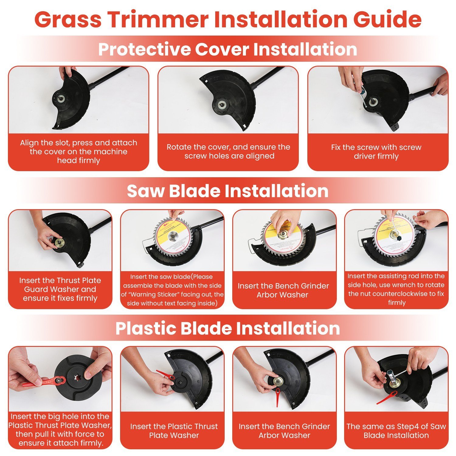 - Motor: Pure Copper Brush Motor(Both Chainsaw & Grass Trimmer)