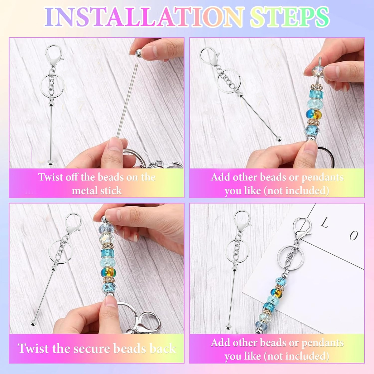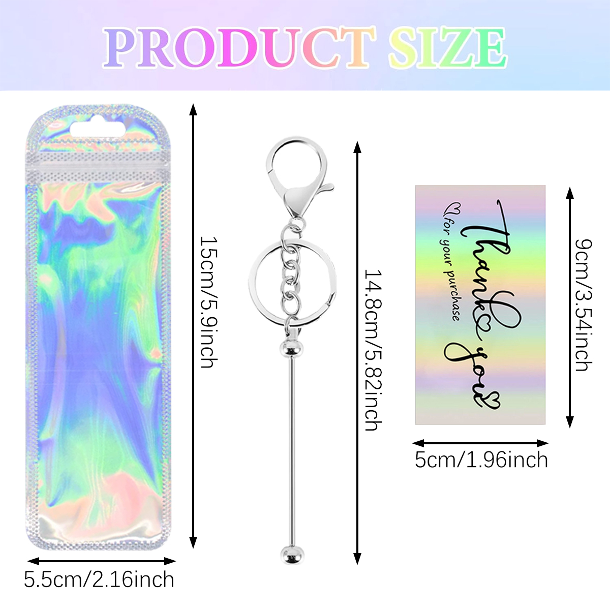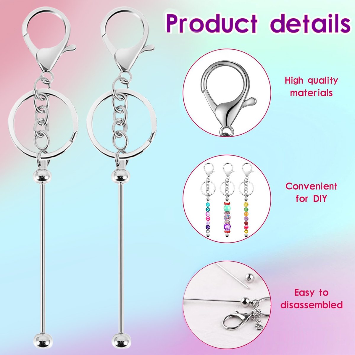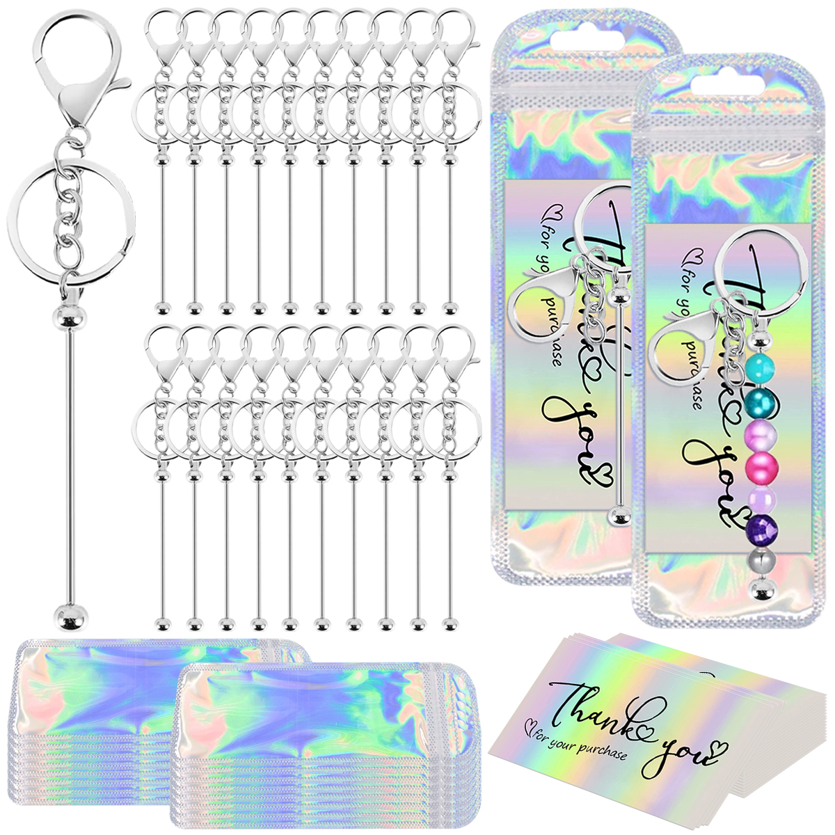 Package contents: 60 Pcs Beadable Keychain Kits