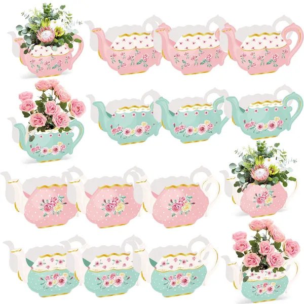 24 Pieces Tea Party Decorations Flower Boxes Spring Theme Princess Party Centerpiece Decorations 4 Style Cute Teapot Shape DIY Flower Box for Birthday Mother’s Day Wedding Shower Party Table Decor