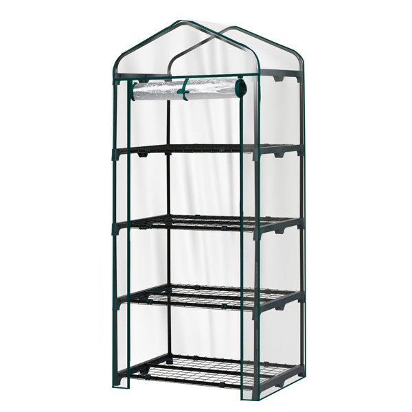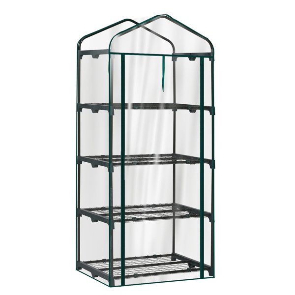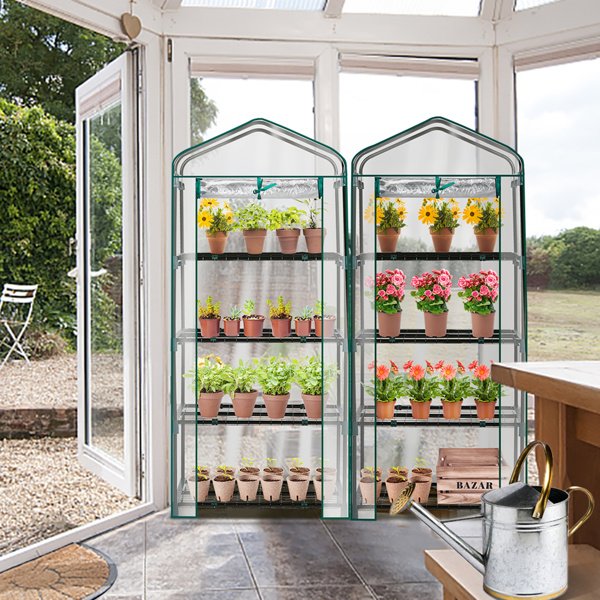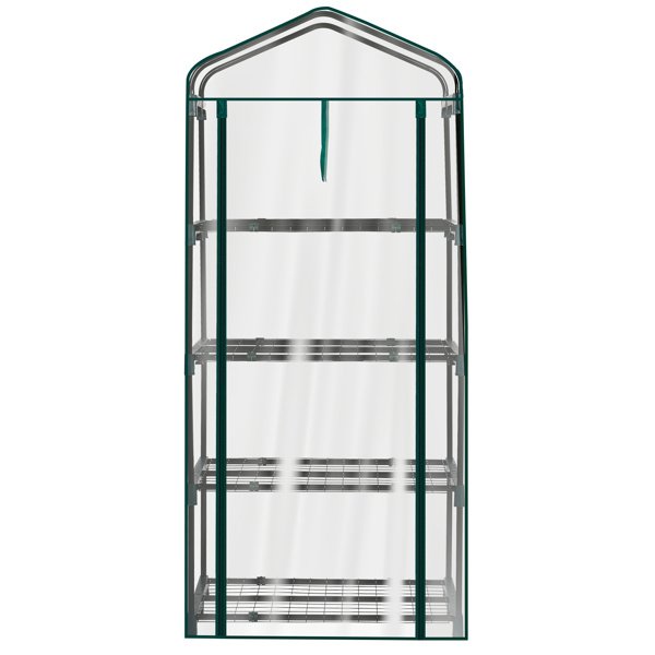 27X19X62in PE Cloth Flower Room Transparent PVC Dark Green Iron Pipe Spire Mini With 4 Ply Grid Flower Stand With Zipper Rolling Door