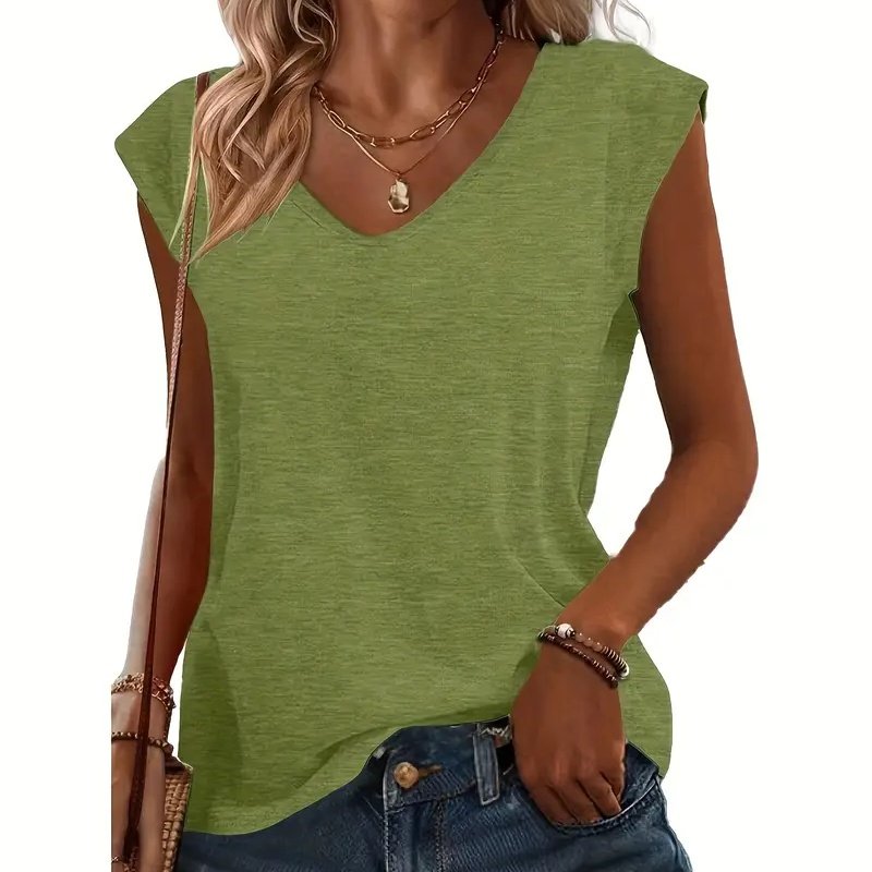 Refresh your wardrobe with this 3-pack of women’s cap sleeve V-neck tank tops —a perfect blend of comfort, style, and value. Designed with a relaxed loose fit and lightweight breathable fabric , these basic tees are ideal for any season and every occasion.