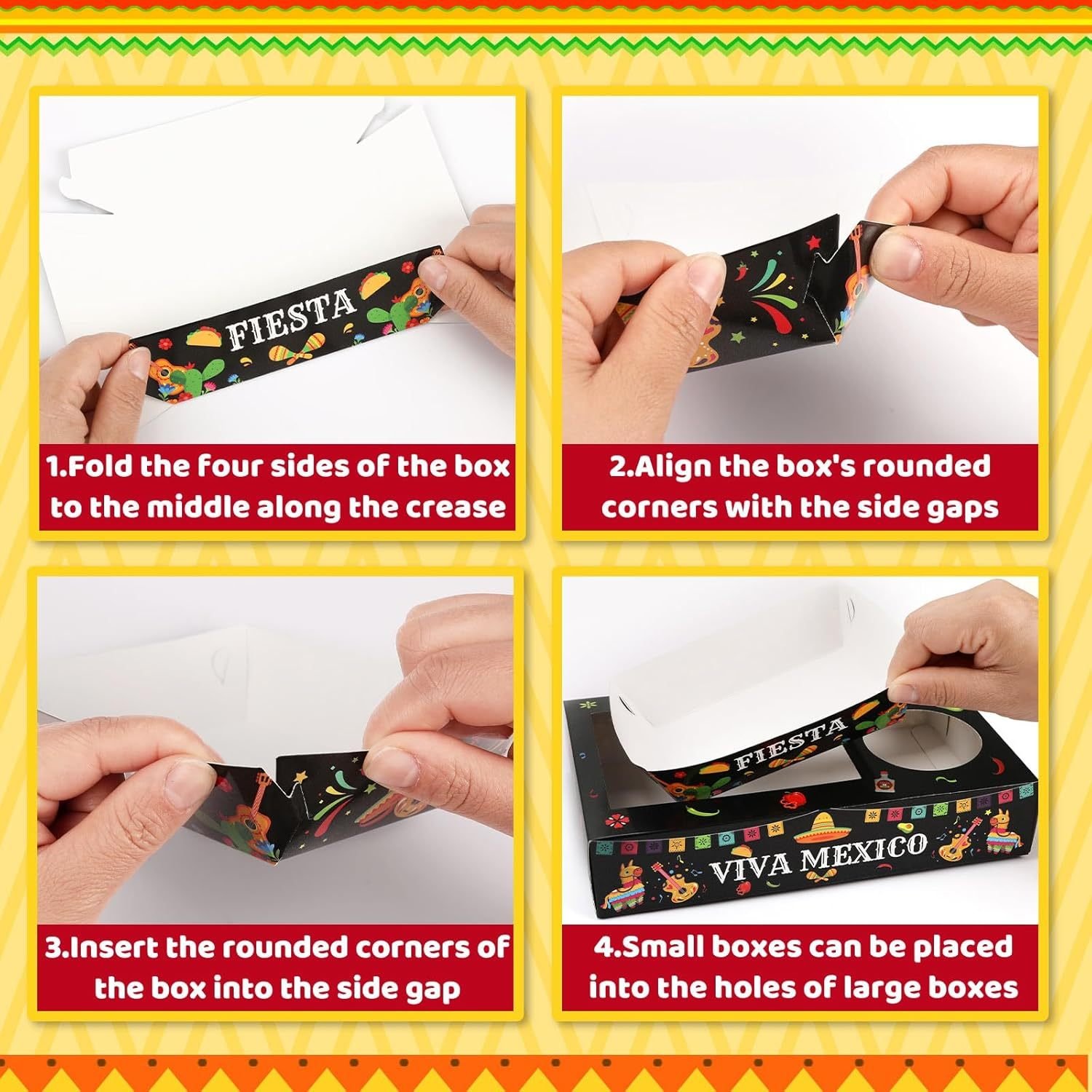 The 36 pieces Fiesta party decorations set is the ideal choice for you to hold a Mexico Festival theme party or event. The Mexican movie night paper snack set contains 18 Mexican boxes and 18 Mexican food trays, which can be combined in various ways to meet your different needs. The snack box has black background and exquisite pattern design, which combines the traditional elements of Mexico with modern aesthetics and adds a touch of vivid color to your holiday celebration. Whether holiday party or a family gathering, Mexican party plates can be the focus of your dinner table.