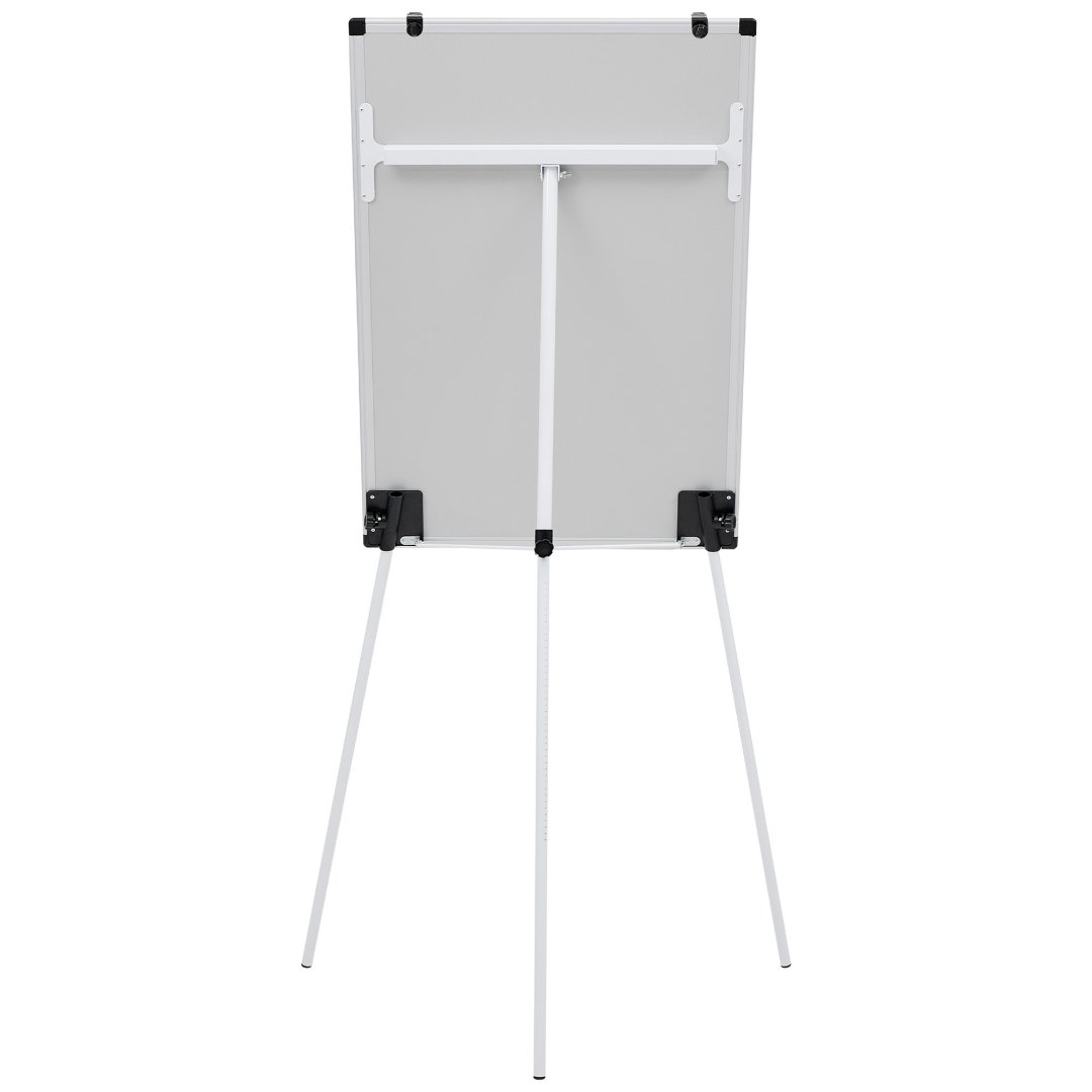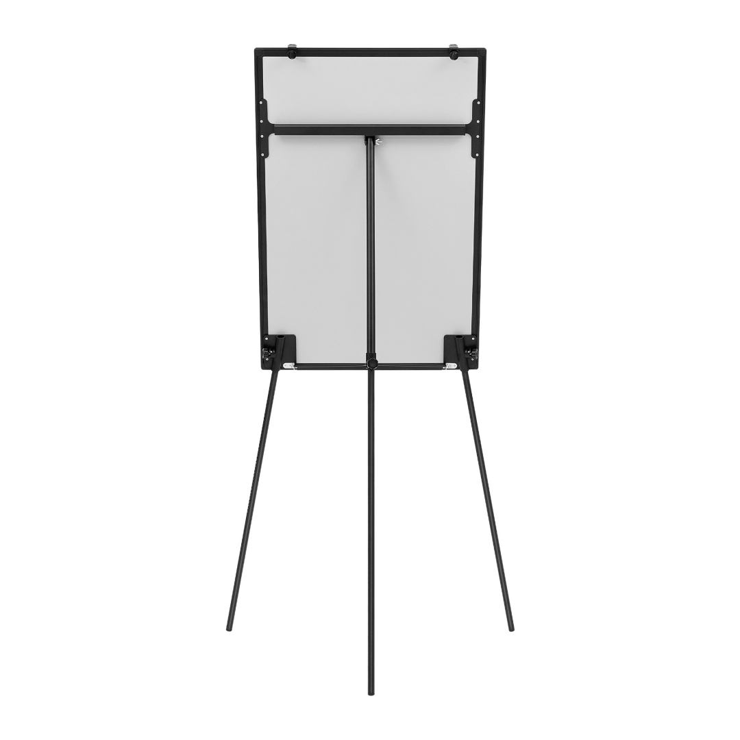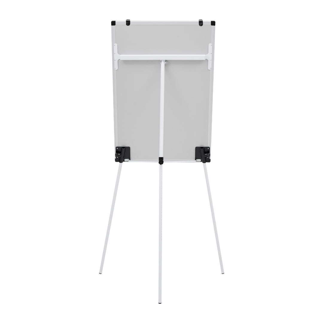 The easel whiteboard features a stable steel tripod stand with rubberized feet, ensuring secure positioning during writing or erasing activities. The lightweight and collapsible design allows for easy portability and flexible placement across various settings, enhancing practicality and convenience.
