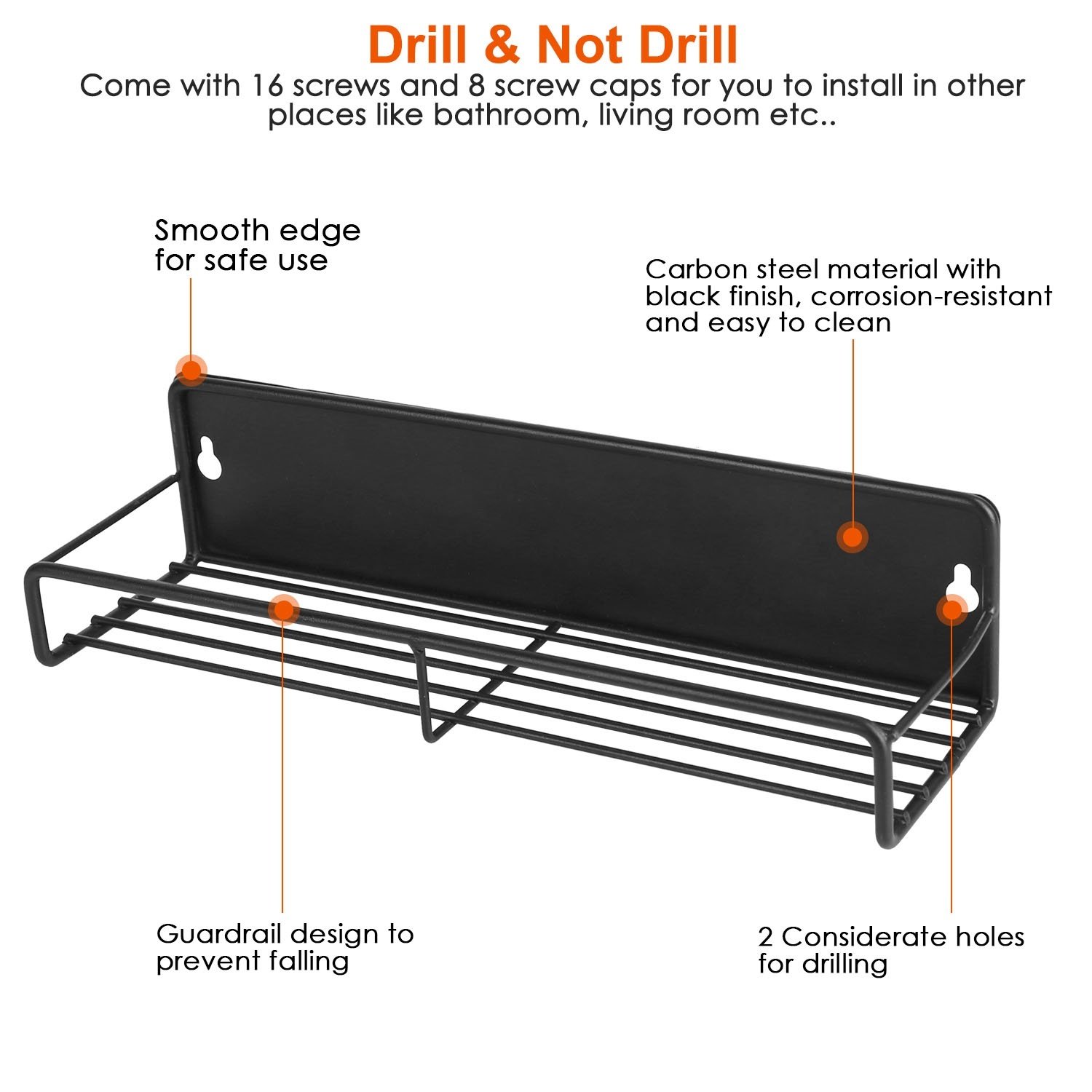 - *Premium Carbon Steel*: Made of carbon steel with a black painted finish,4 racks are built to last and can hold up to overall 44lbs. Perfect for storing sugar,salt,olive oil,spices,pepper or other small items.