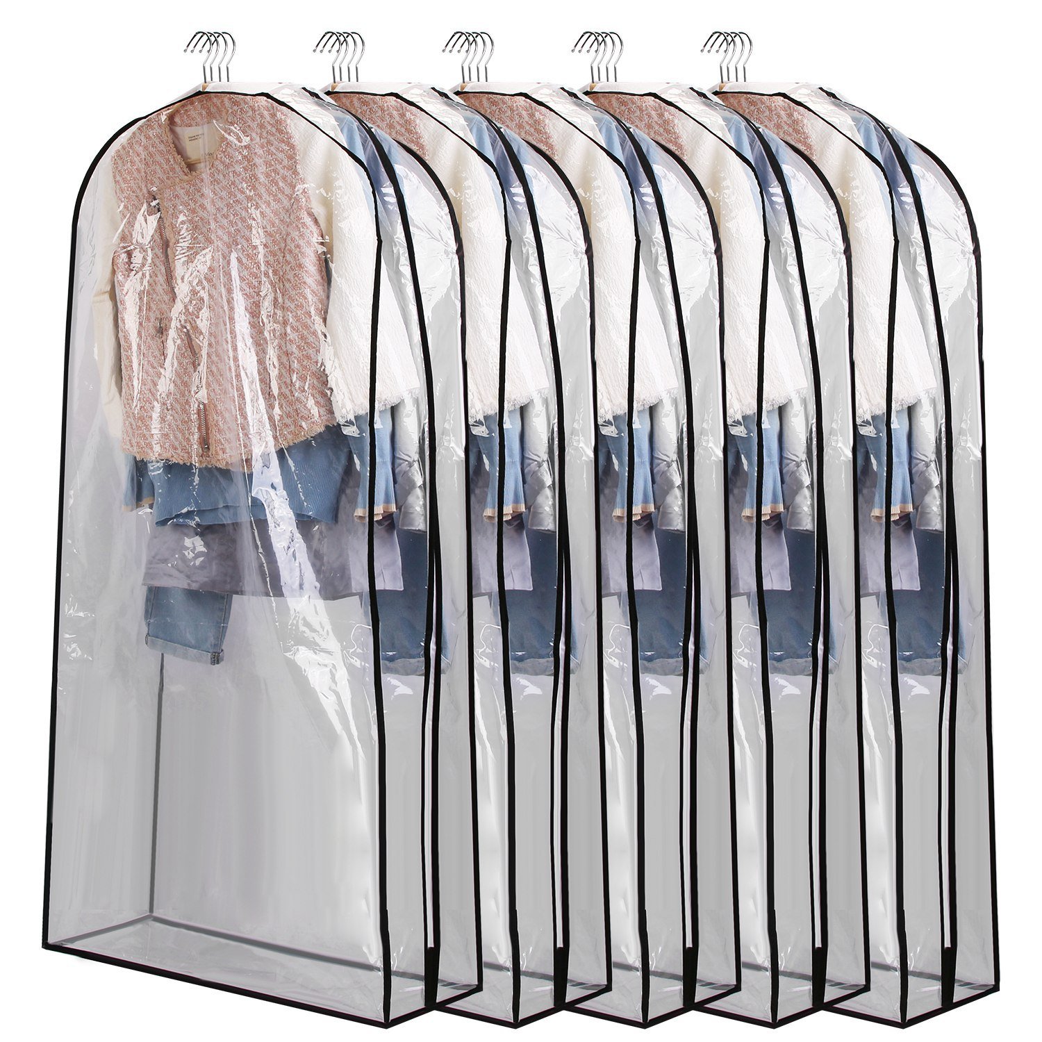 5 Pack 60In OR 40In Options Garment Bag For Hanging Clothes Dustproof Waterproof Hanging Clothes Storage Bag Clear Transparent Suits Cover For Sweater Jacket Coat Dress Shirt