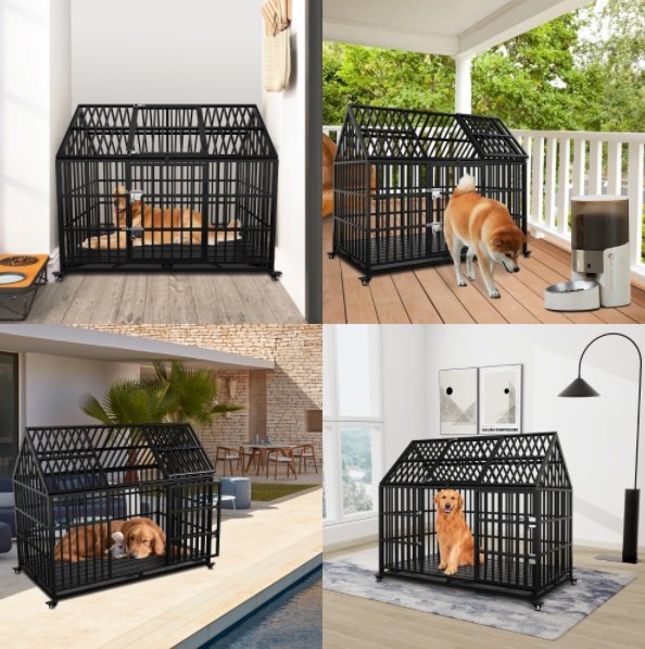 • Pointed Roof & Top Door: The pointed roof design of this large indoor dog kennel provides extra height, expands living area, suitable for large dogs. The top door allows you to interact or check or feed your pet easily, good for high anxiety dogs.