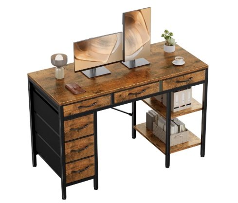 Spacious Storage & Organization: This writing desk features 6 fabric drawers and two storage shelves, offering ample space for all your essentials. Perfect for organizing office supplies, gaming gear, and more, it helps you maintain a clean and efficient workspace.