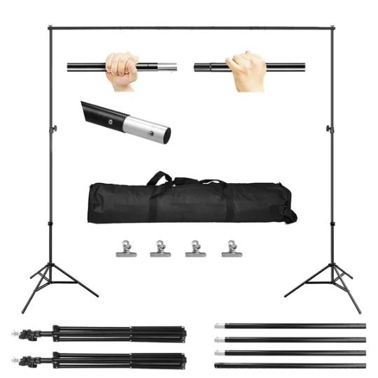 **ADJUSTABLE PHOTOGRAPHY BACKDROP STAND*:Our backdrop stand consists of 4pcs 2.5ft-length crossbars which the length can be adjusted from 5ft to 10ft after assembly and 2pcs support stands which the length can be adjusted from 2.5ft to 6.5ft after assembly.