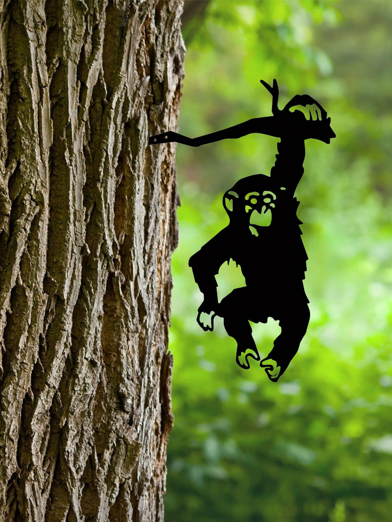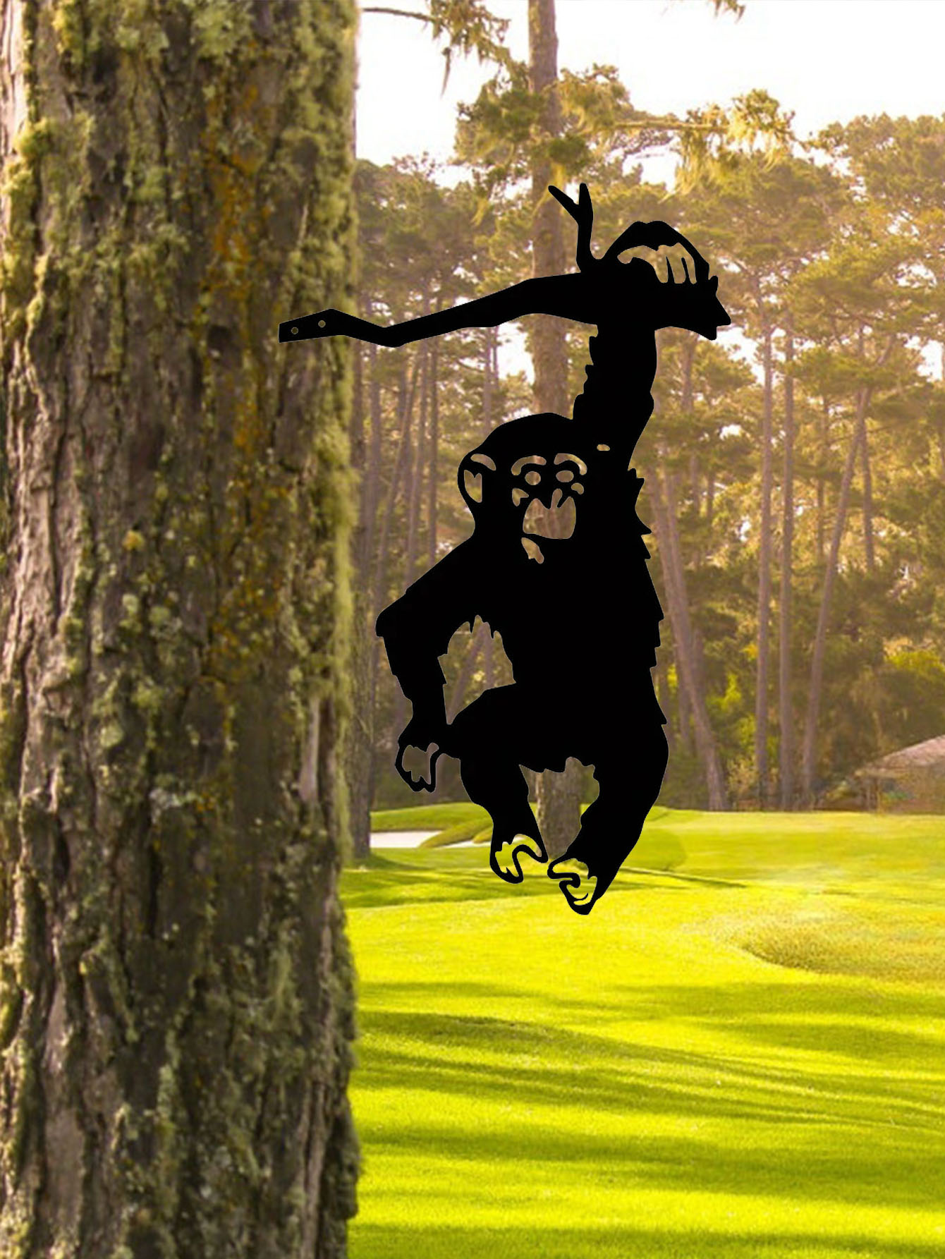 Charming Monkey-Themed Garden Stake with Hanging Monkey on Branch: Whimsical Yard Art, Perfect for Enlivening Outdoor Areas, Gardens, Lawns, Patios, Backyards, Decorative Outdoor Wall Decoration Wall Sculptures.Wall Sculptures