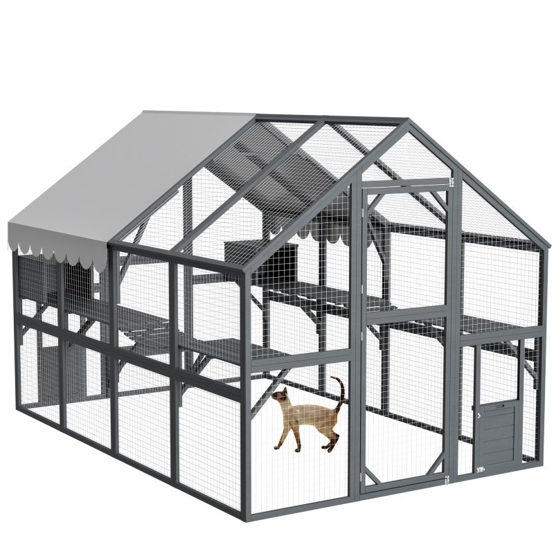 - 【Convenient Walk-In Cat Enclosure Design】The enclosure is equipped with a 60-inch tall door with a safety lock, making it easy for you to step into the enclosure and interact with your cats. The spacious area allows for more comfortable playtime with your cats and easier cleaning and maintenance.