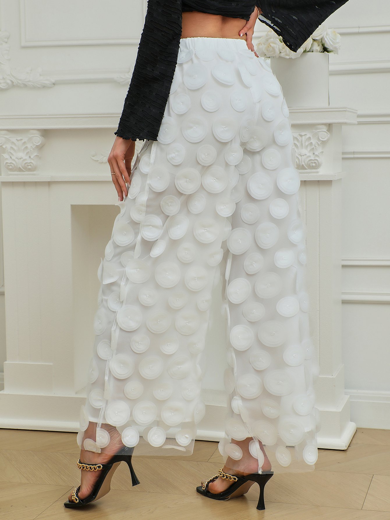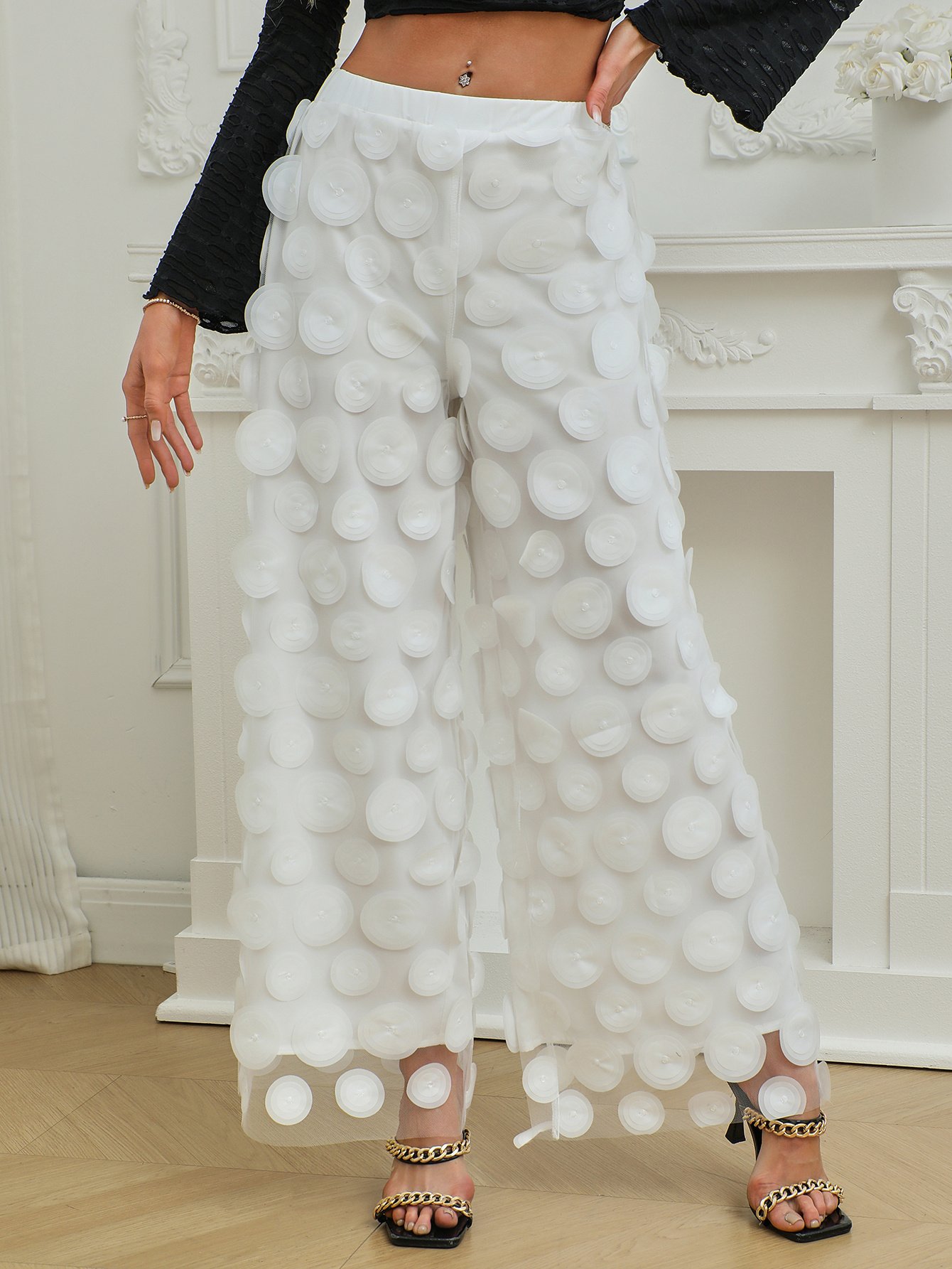 Be the first to review “Fashionable Temperament Round Piece Design Tassel Hollowing High Waist Straight Ladies Pants”