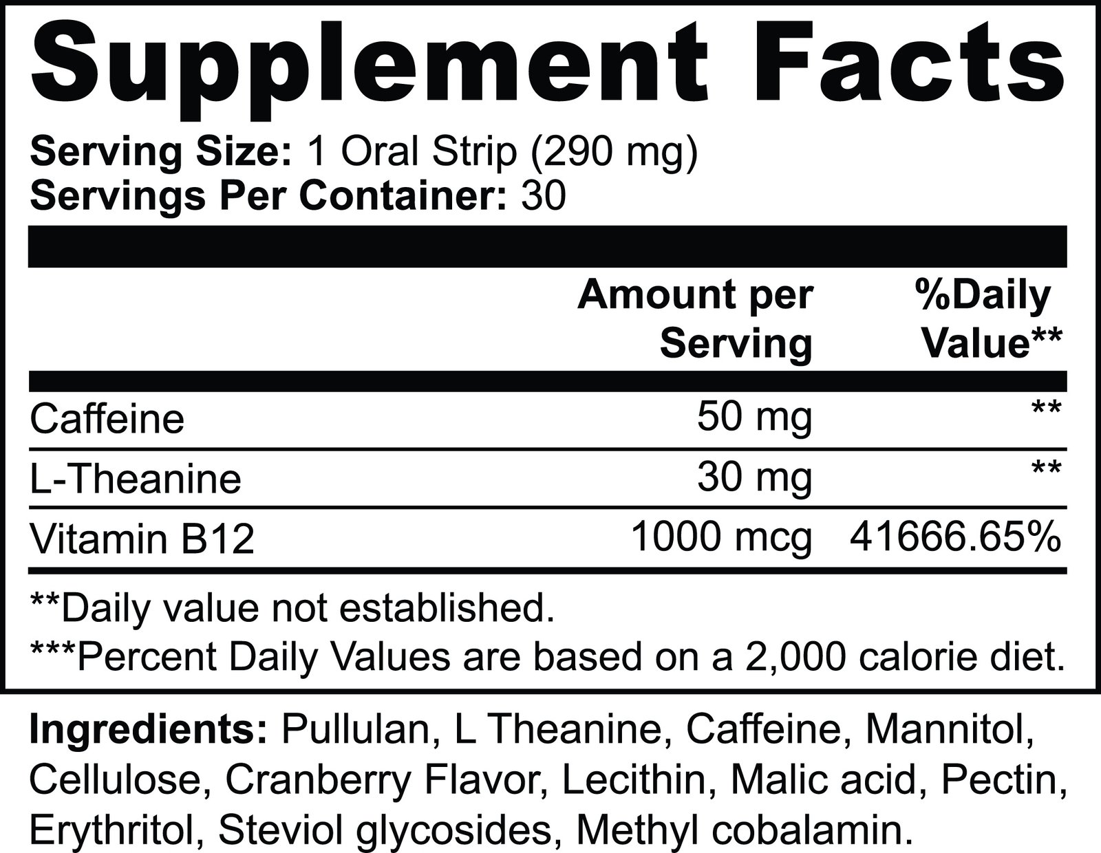 Featuring a unique blend of Green Tea Caffeine and L-Theanine , these strips offer sustained energy that lasts for hours, making them perfect for workouts or busy days. Additionally, Vitamin B12 is included to support energy production by converting carbohydrates into glucose—the fuel your body craves.