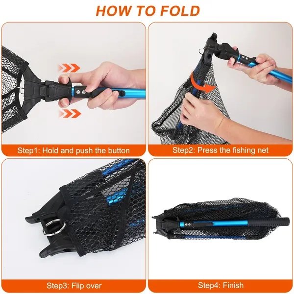 *Foldable Fishing Net*:With the folding size of 5.12×16.93×2.17in,our foldable fishing net can be conveniently carried or transported to anywhere you want. Just press and flip over the triangular net,easily fit in various fishing bags.
