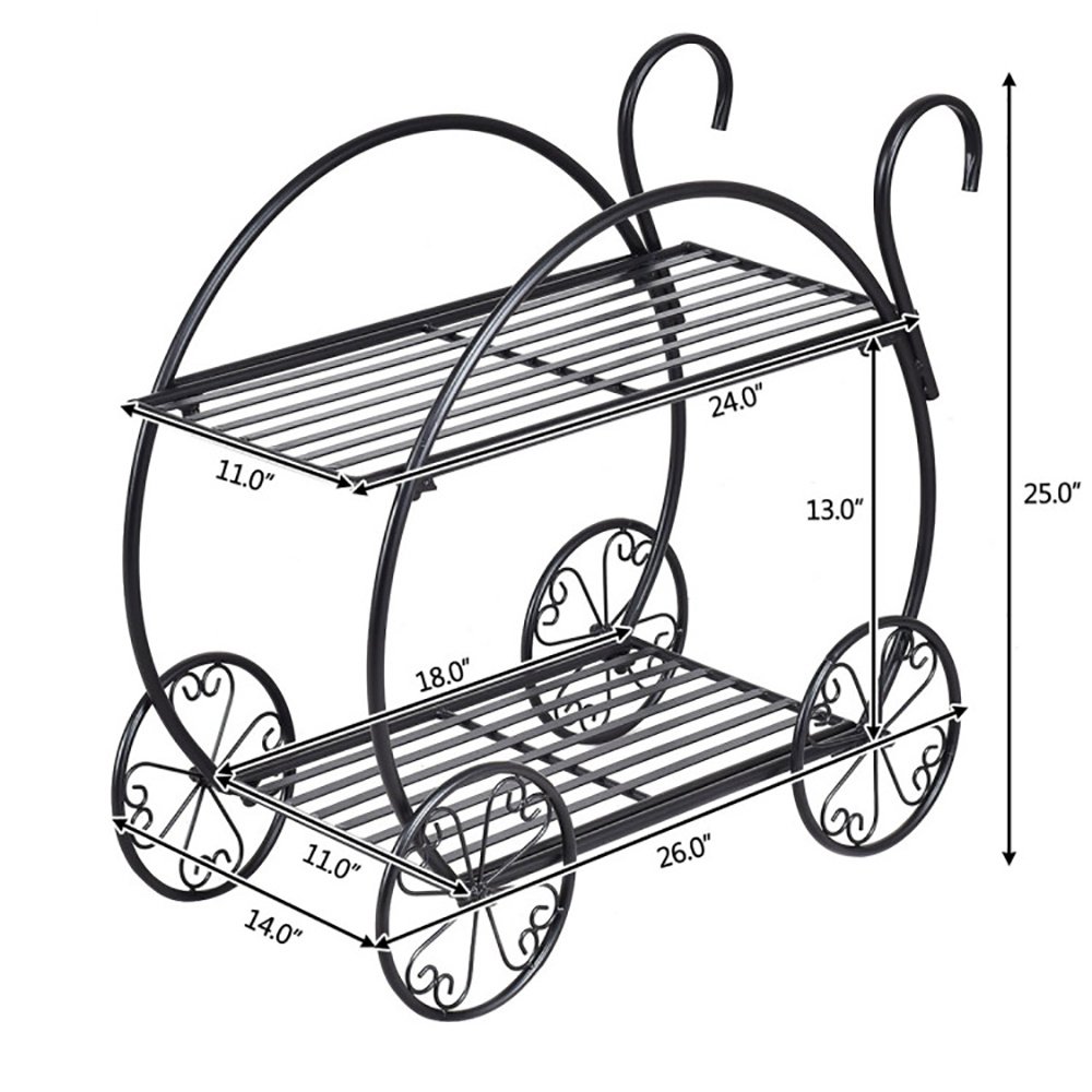 ● Decorative and Practical Function: Its shape looks like a Parisian trolley cart with round wheels. It can perfectly serve as a exquisite and classic decoration. There are two tiers in total and each tier is wide enough for you can put your plant pot or flowers on.