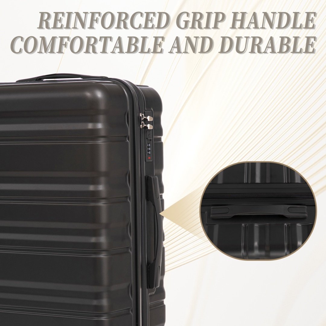 - Modern Appearance:The stylish and smooth vertical stripe design of the rolling luggage makes it more resistant to pressure and wear and brings a good mood to your journey. It includes four molded side feet, they allow the luggage to remain upright even when standing on its side.
