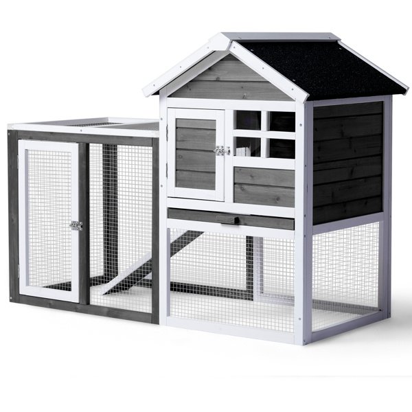 House Type With Ladder Gray Fir Wood Chicken Rabbit Cage