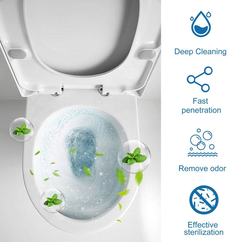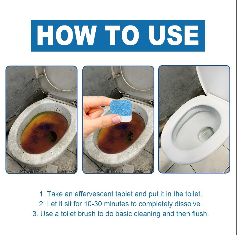 Our toilet bowl cleaning tablets contain lemon extract, biological enzymes. It is effective in opening blocked drainage fields and removing biomats. The way to use it is very simple: 1. Take the effervescent tablet and put it in the toilet. 2. Let stand for 10-30 minutes to dissolve completely. 3. Use a toilet brush f