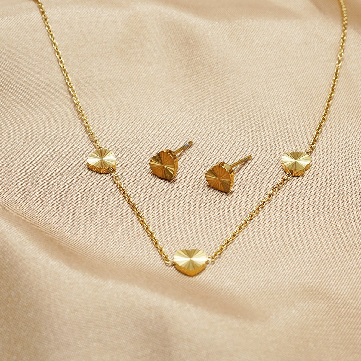 Product Details 1. Minimalist Heart Design Add a modern twist to your look with this geometric heart-shaped jewelry set. The brushed gold surface catches the light beautifully, offering a minimalist yet luxurious aesthetic. 2. Waterproof & Hypoallergenic Crafted from premium stainless steel with 18K real gold plating, this set is waterproof, tarnish-resistant, and gentle on sensitive skin. Perfect for daily wear—even in the shower or pool. 3. Size & Fit Earrings: 0.6 cm × 0.6 cm (about 0.23 inches) Necklace Length: 41 cm + 5 cm extension chain (about 16.14 + 1.97 inches) Lightweight design ensures comfortable wear for long hours. 4. Ideal Gift Choice A perfect gift for Women, Girls, or your Girlfriend on Valentine’s Day, Mother’s Day, Birthday, Christmas, Wedding, Anniversary, or any memorable occasion. 5. Daily Elegance for Every Outfit Whether for casual outfits or party dresses, this elegant heart set brings a sophisticated touch. Ideal for daily wear, date nights, summer vacations, or weddings.  |