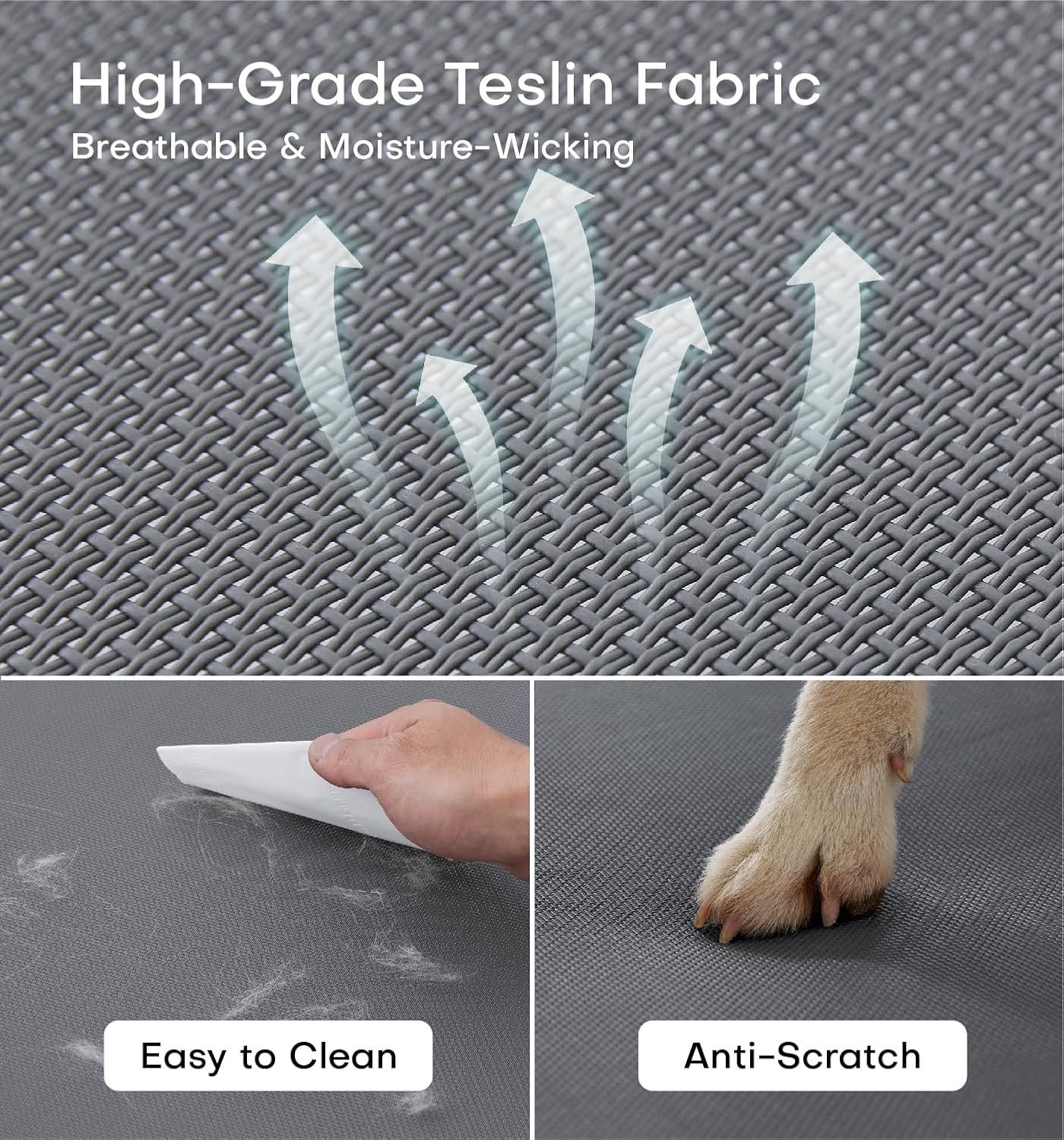 • Easy to Clean & Maintain – The heavy-duty Teslin mesh fabric repels dirt, moisture, and odors.Just hose it down or wipe it clean.This portable dog bed is made for real-life messes-from muddy paws to fur shedding-and dries quickly for the next adventure