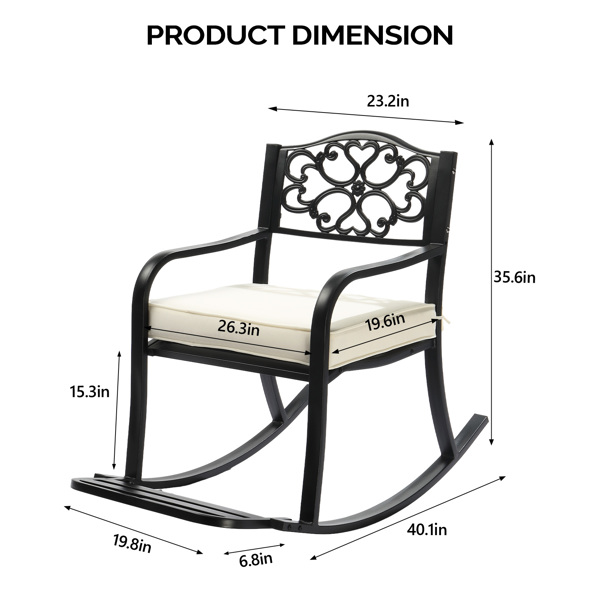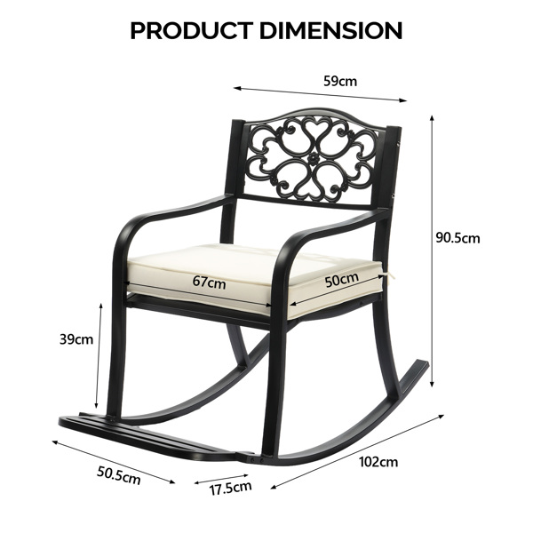3.Stable Construction – Engineered with reinforced cast iron construction, this rocking chair guarantees rust-proof durability and rock-solid stability. The ultra-smooth finish withstands harsh weather while maintaining like-new appearance season after season