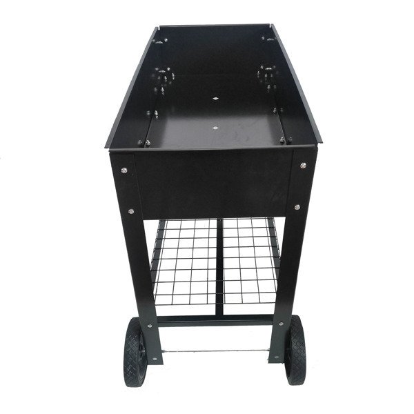 - 4 high-strength metal legs, which can carry more than 200 pounds. With a storage shelf, you can store planting tools. The frame of the groove are designed with sealing edge and 4 curved corners can avoid hand cutting.