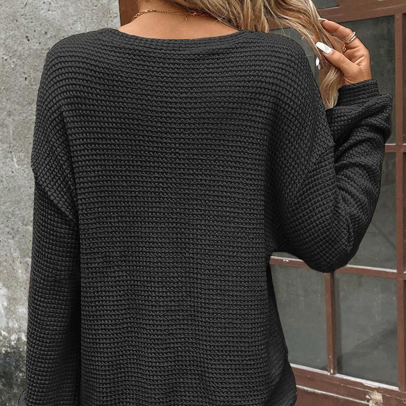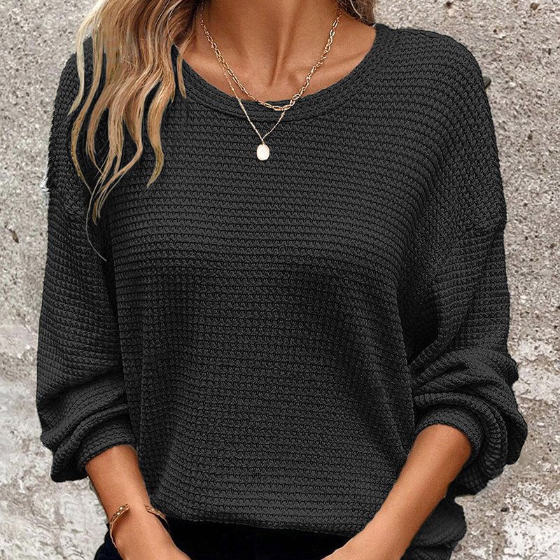 Plus Size Women’s Waffle Knit Round Neck Drop Shoulder Long Sleeve Top – Casual Loungewear