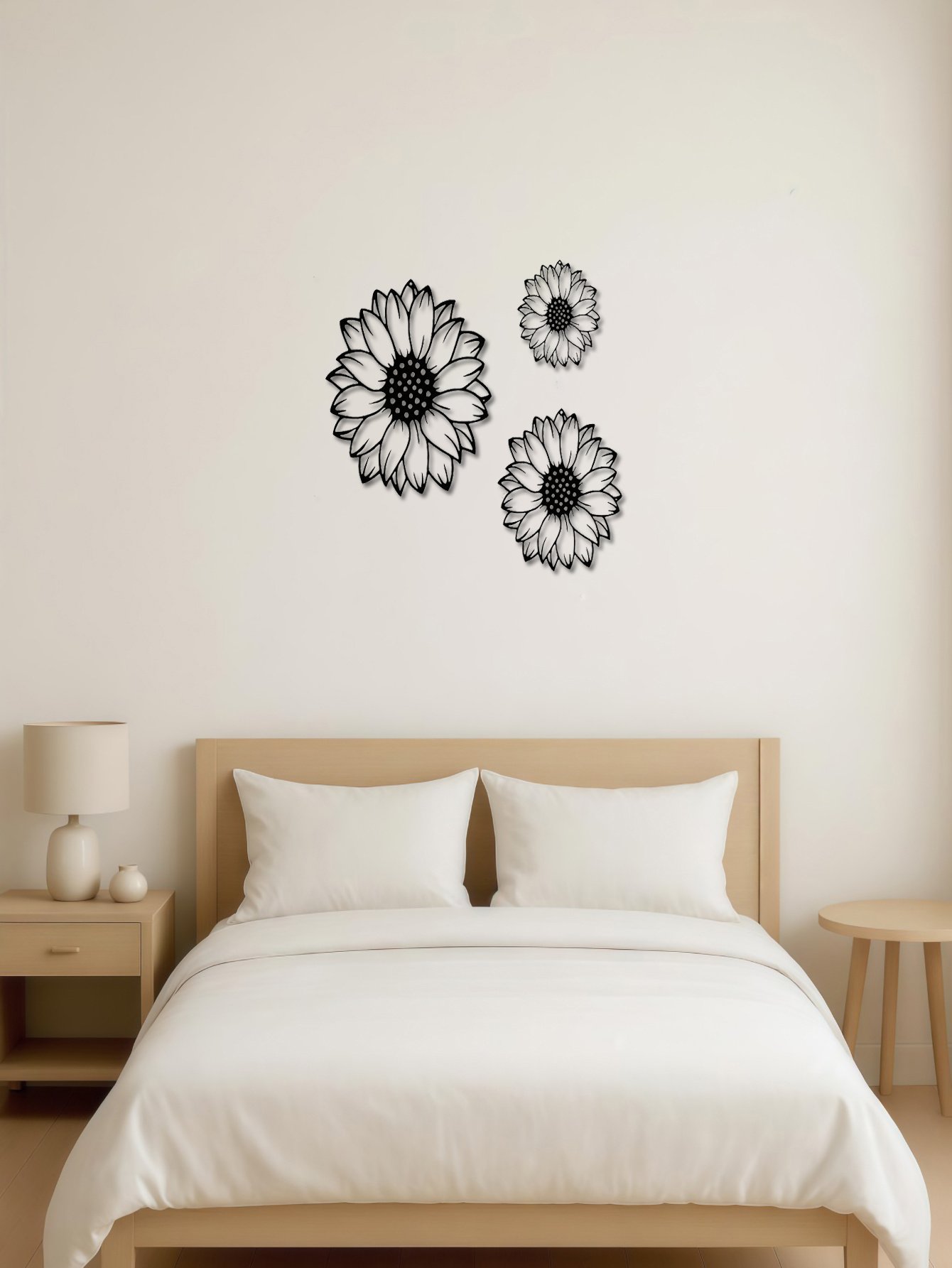Sunflower Silhouette Pendants Set of 3 Stunning Elegant Metal Wall Art for Home Decoration Perfect for Bedroom Wall Decor Living Room Dining Room Indoor Stylish Hanging Ornaments Wall Sculptures