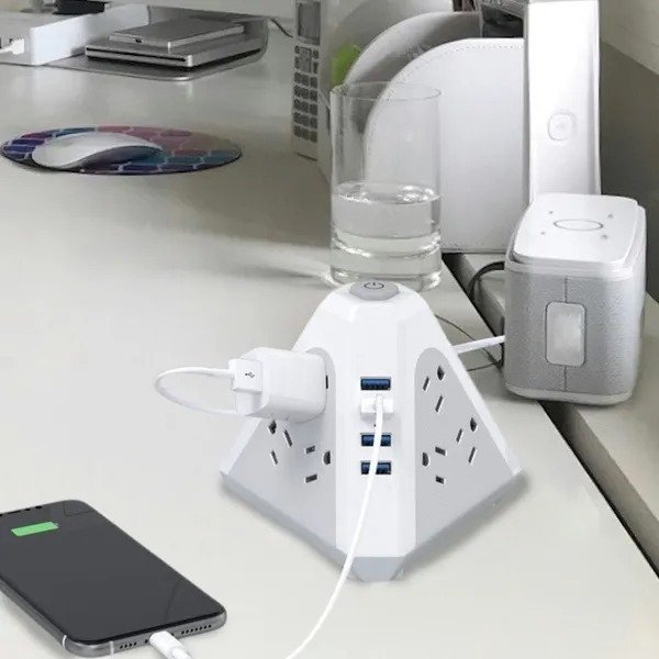 Simplify your charging setup with the Triangle Port Charger 13-in-1 Charging Station, a powerful and space-saving solution designed for modern homes, offices, and dorm rooms. Engineered with a unique triangular structure, this tower-style power strip offers enhanced stability and an efficient layout for powering multiple devices at once—without the clutter.