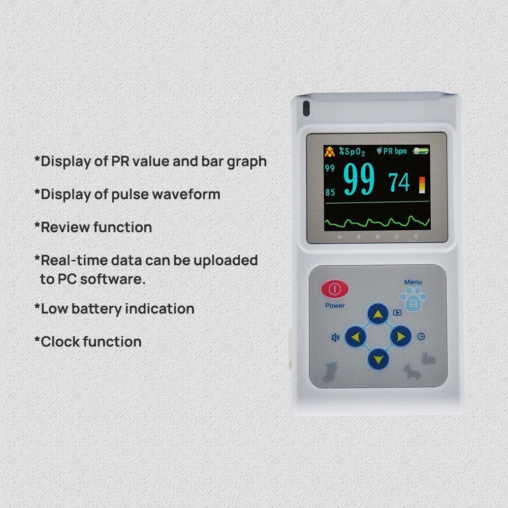 CMS60DVET Pulse Oximeter adopts Photoelectric Oxyhemoglobin Inspection Technology in accordance with Capacity Pulse Scanning & Recording Technology, which can be used to measure SpO2 and pulse through animal’s tongue or ear. It is applicable for use in family and pet hospital, etc.