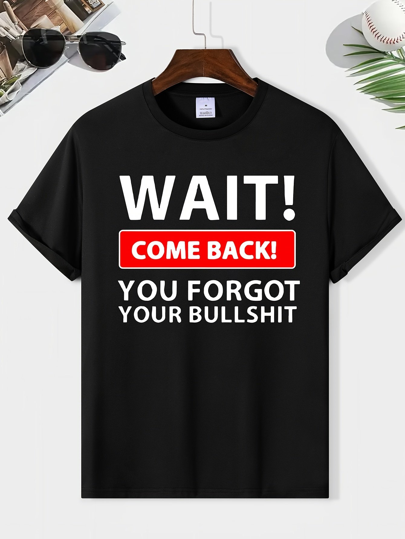 Wait A Minute, When You Come Back, You Forgot Your Nonsense. Printed Men’s Round Neck Short Sleeved T-shirt, Fashionable Regular Version T-shirt, Top For Spring And Summer Holidays