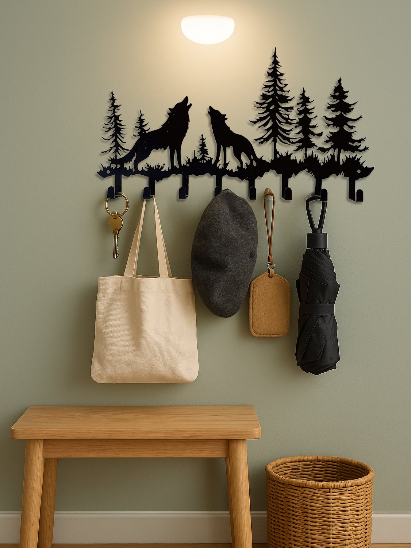 Wolf Key Holder Wall Mount,8 Hook Coat Rack ,Scarves – Rustic Entryway Organizer